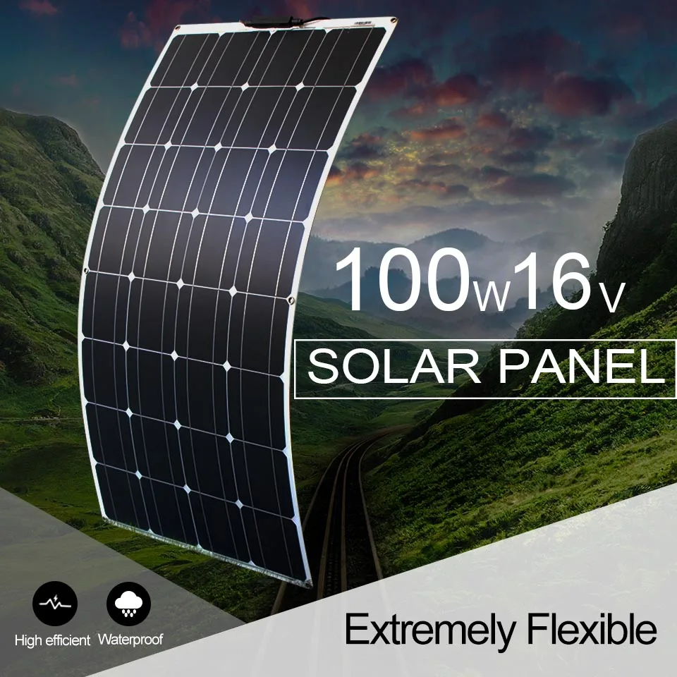 16V 100W Flexibel Sol Panel System för bil båt eller husvagn