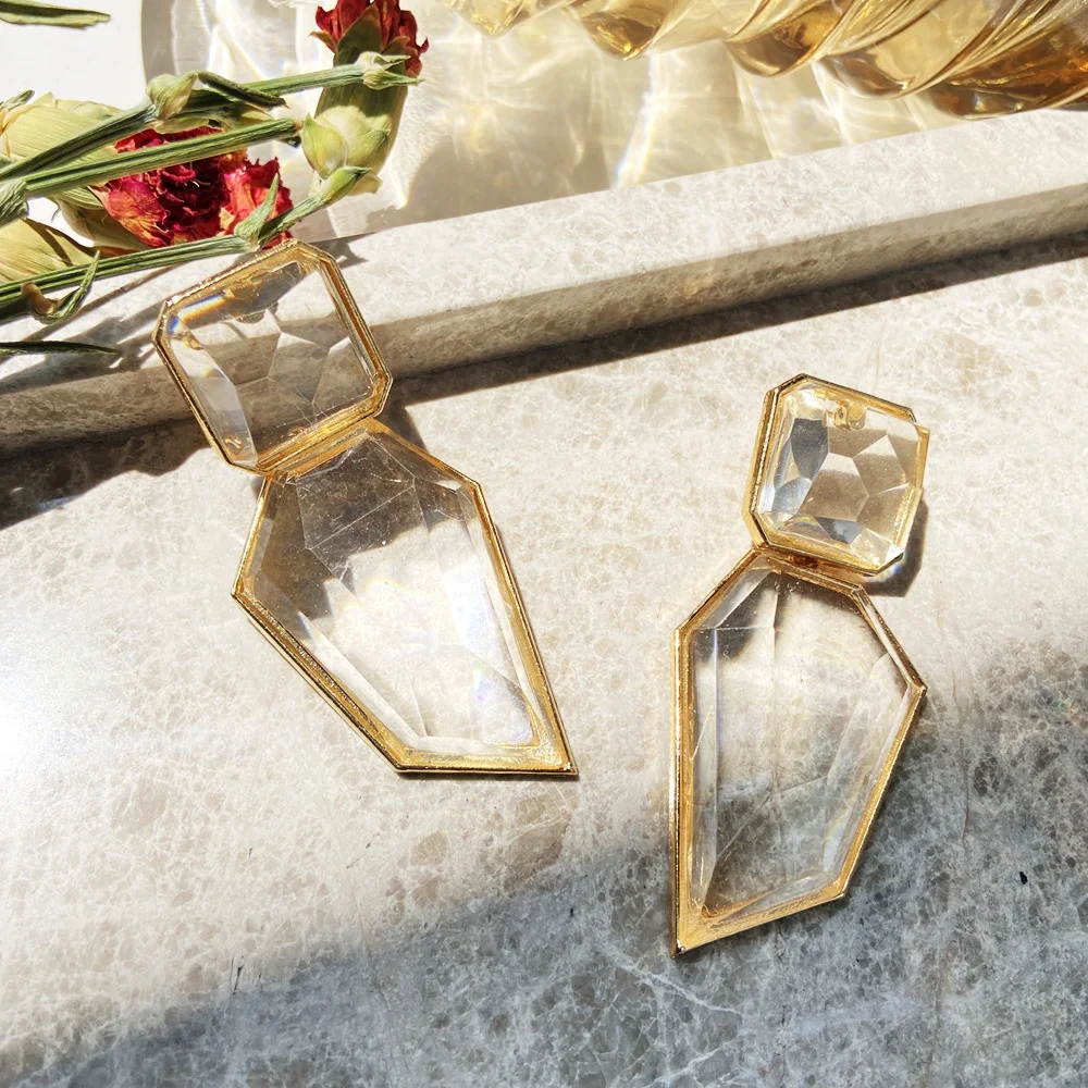 Kaimei stora geometriska akryl örhängen stora Bohemian Transparent Irregular Guld Resin Dangle Örhängen Kvinnor