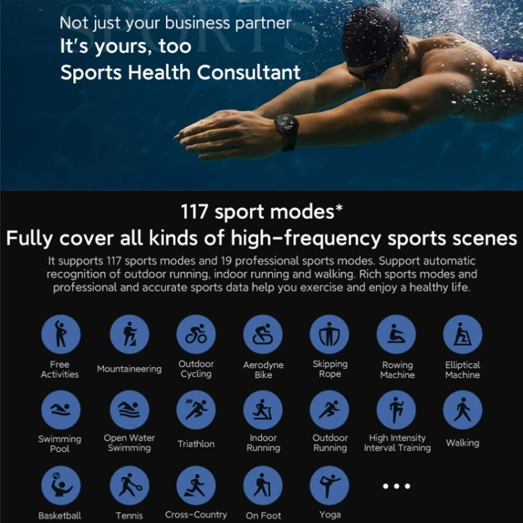 stöd för att svara på samtal, stödja nödsamtal, tryck på den nedre högra knappen 3 gånger för att automatiskt ringa nödkontakter (denna funktion kräver att du först ställer in nödkontakter på mobiltelefonen); inbyggd APP, stödja applikationsmarknaden för att ladda ner APP online; NFC ;117 sportlägen; dubbelfrekvent GNSS femstjärnig positionering; puls/sömnövervakning i alla väder, blodsyredetektering Observera: